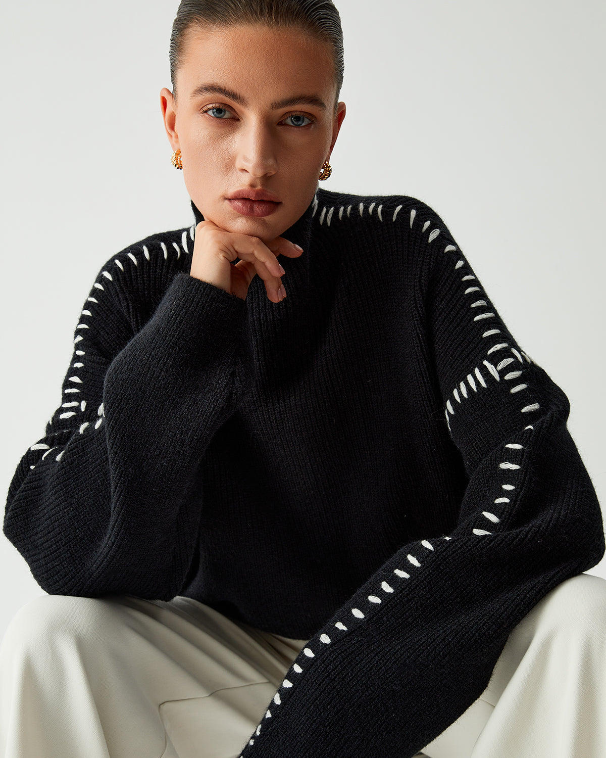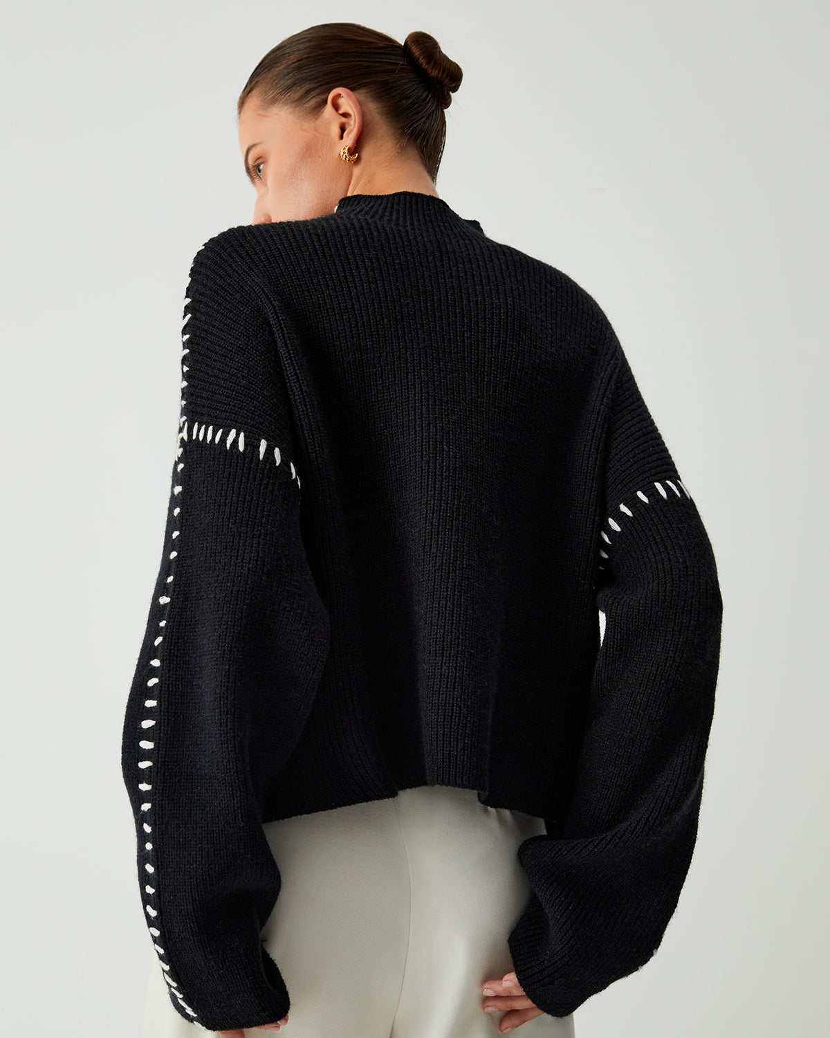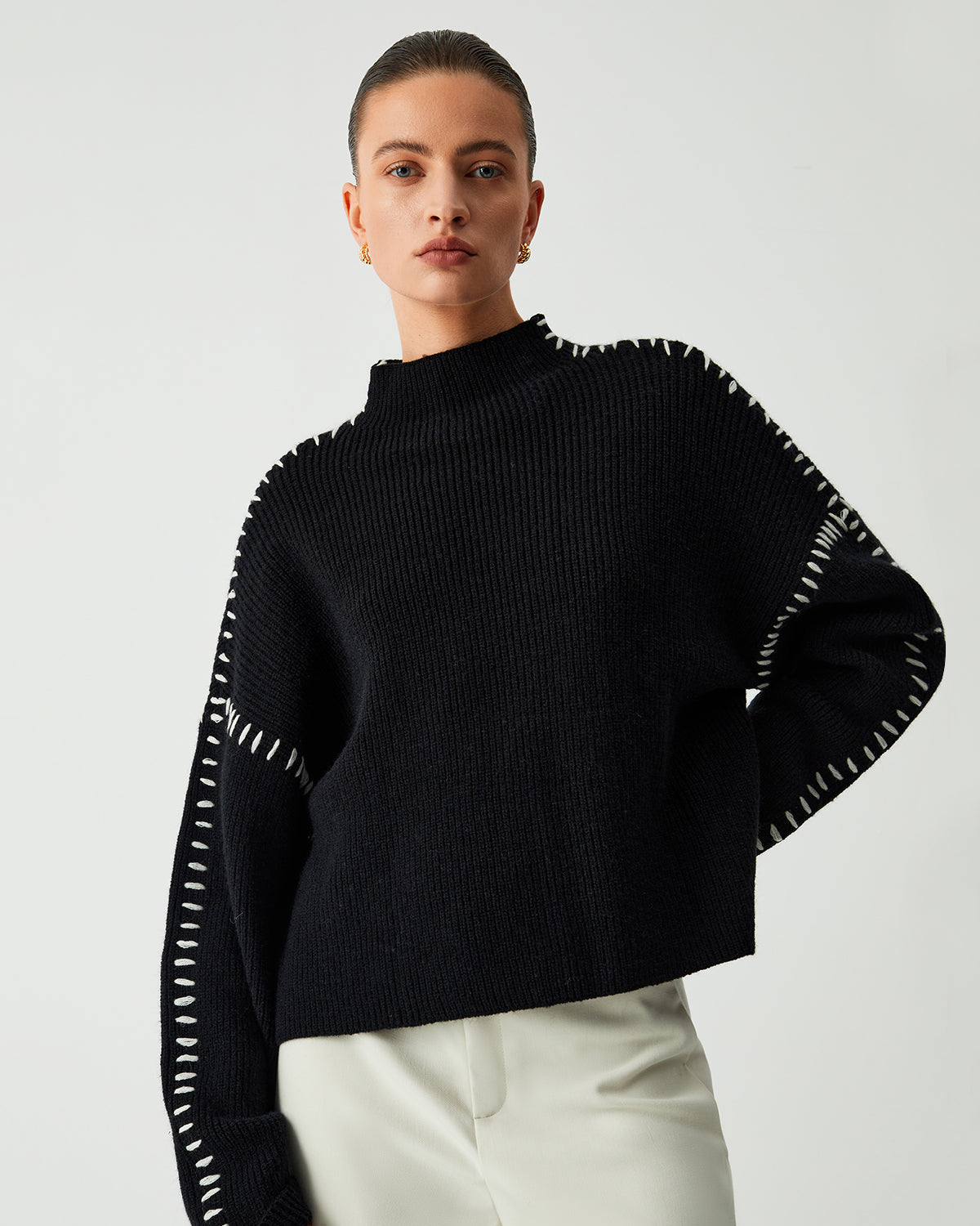 Ce pull oversize allie confort et élégance dans un design intemporel. Sa maille douce est agréable sur la peau et procure une chaleur délicate, tandis que sa coupe ample offre une allure féminine et décontractée. Les surpiqûres contrastantes le long des coutures apportent une touche unique et charmante.