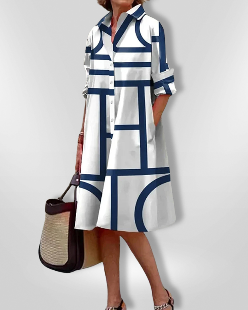 Faites se rencontrer style et confort avec Helena – une robe midi moderne à twist élégant. Le motif géométrique donne à votre look une allure fraîche et contemporaine, tandis que la coupe évasée en A flatteuse et le tissu doux offrent liberté de mouvement et confort.