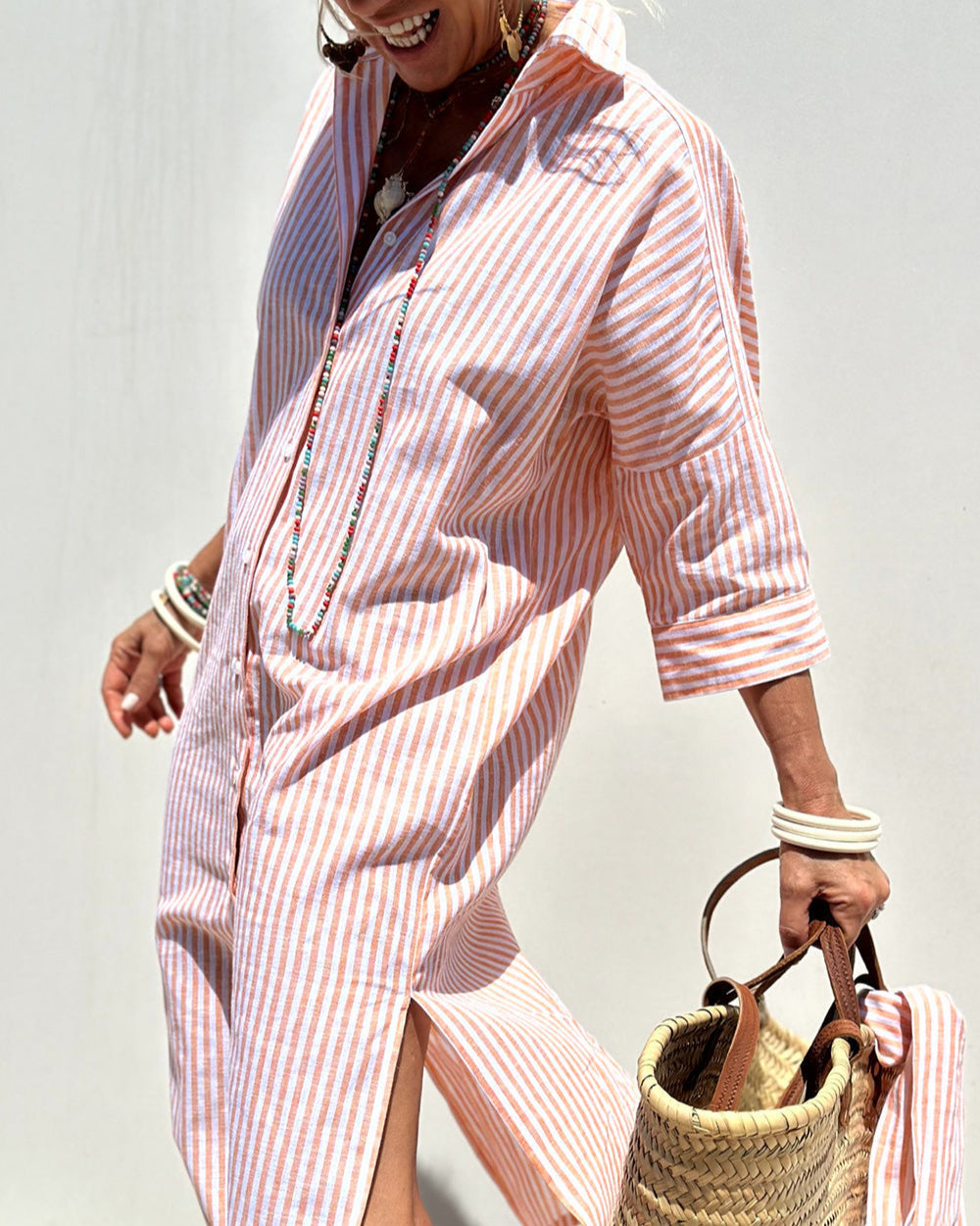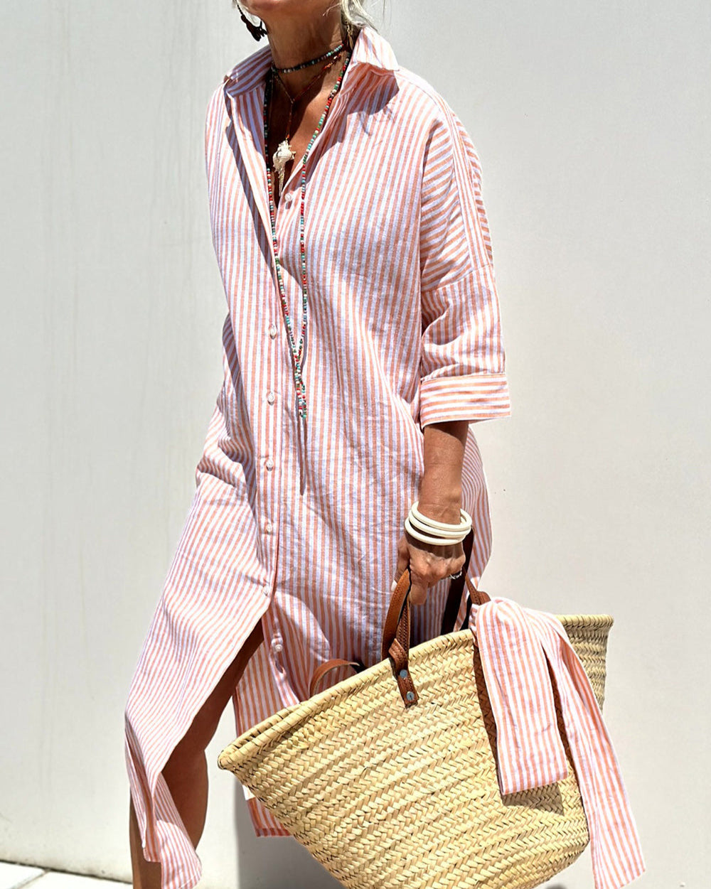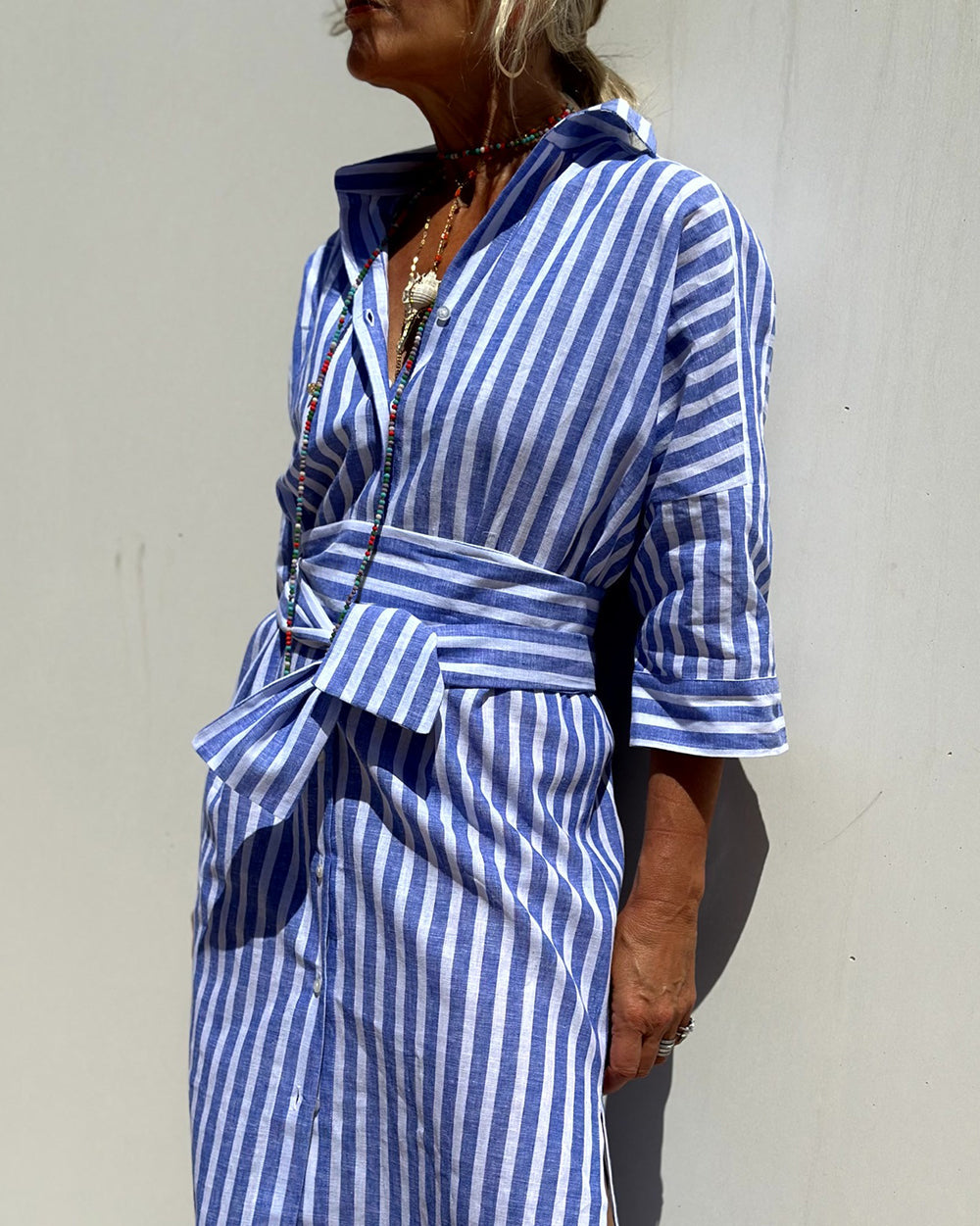 Notre robe-chemise Sophia à rayures est bien plus qu’un simple vêtement : elle incarne l’élégance intemporelle et un confort sans pareil. Avec son design raffiné et ses finitions haut de gamme, cette robe offre l’équilibre idéal entre mode et fonctionnalité, pour que vous soyez non seulement élégante, mais aussi parfaitement à l’aise.