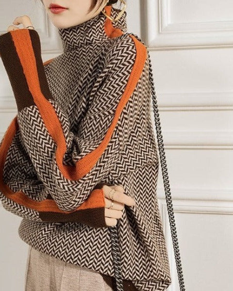 Vera allie élégance moderne et confort pratique. Ses rayures contrastantes apportent une touche graphique et raffinée, tandis que le col montant vous garde au chaud et bien protégée.